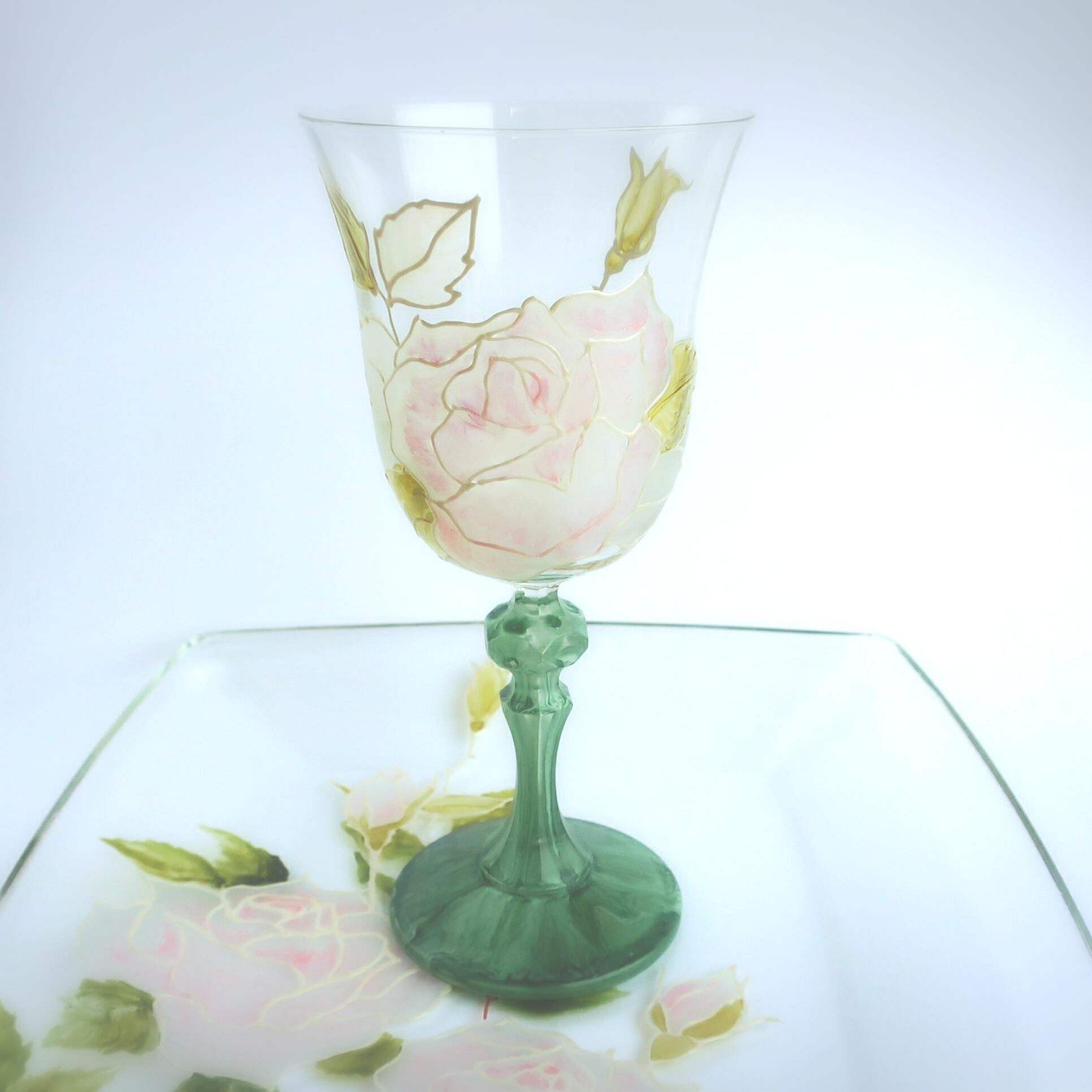 【母の日プレゼント】野バラ大理石風ワイングラス1客/母の日ギフト・誕生日プレゼント