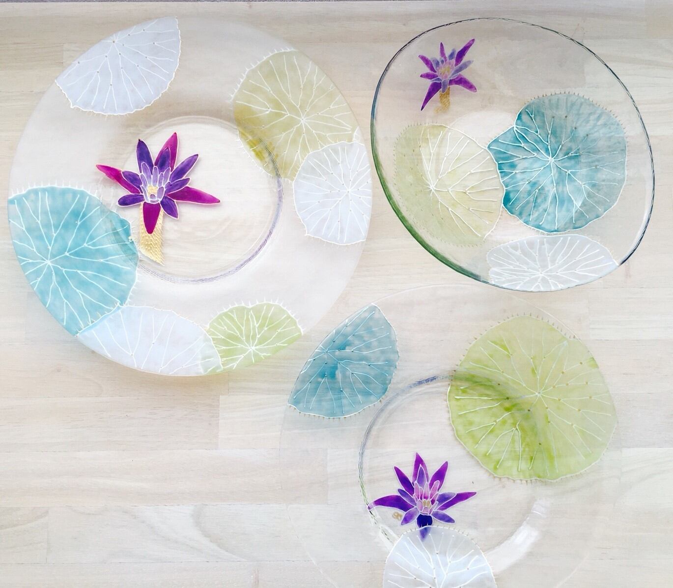 ・グラスペイント作品は、描いた後に焼付けされ、食器としてお使いいただけます。(人体に無害な絵具です)