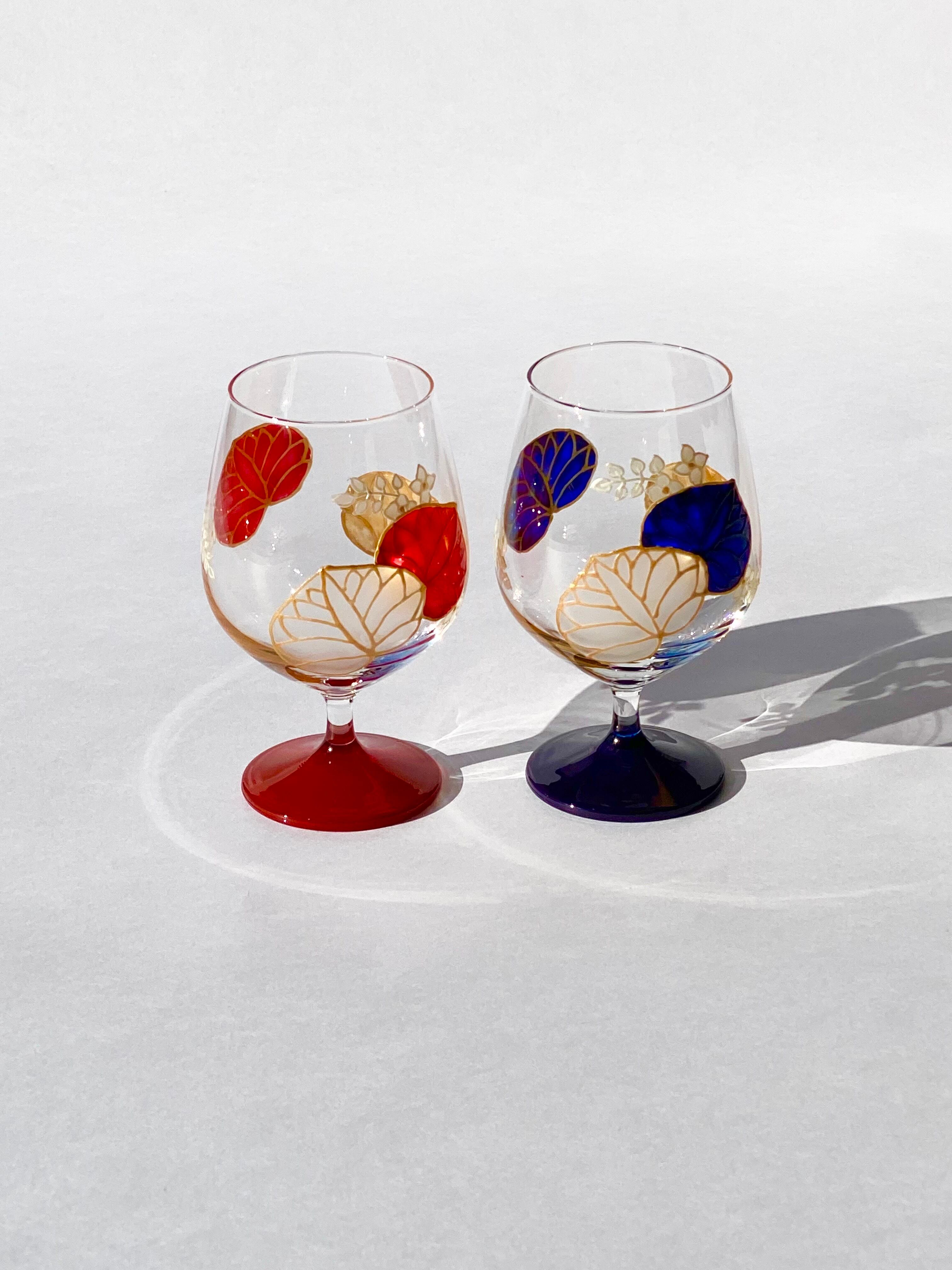 結婚祝い、退職祝いにおすすめです。硝子の日本酒グラスお猪口に フランスのガラス専用絵具で手描き絵付け。