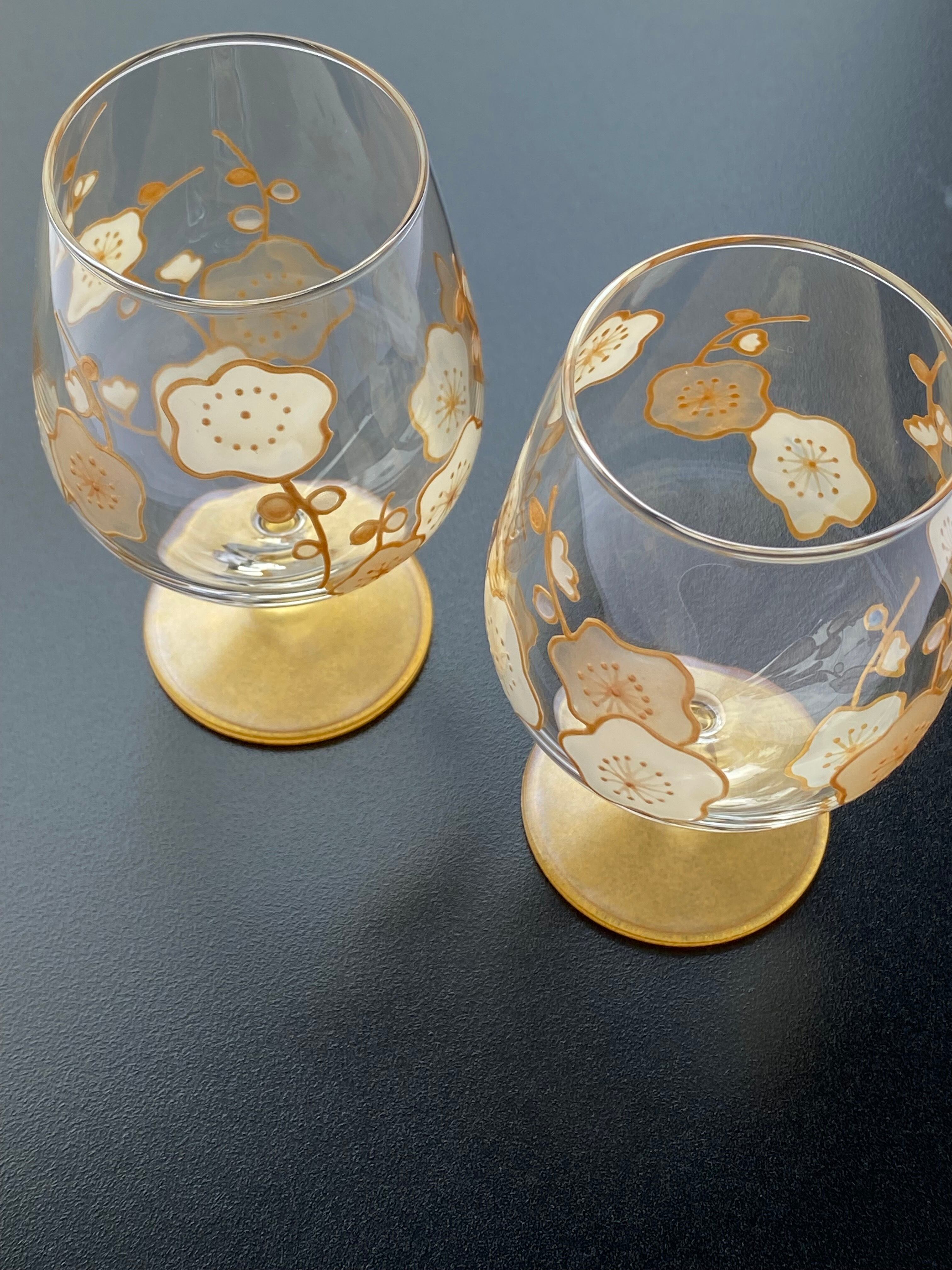 日本酒グラス お猪口に 南フランスのガラス専用絵具で手描き絵付け。