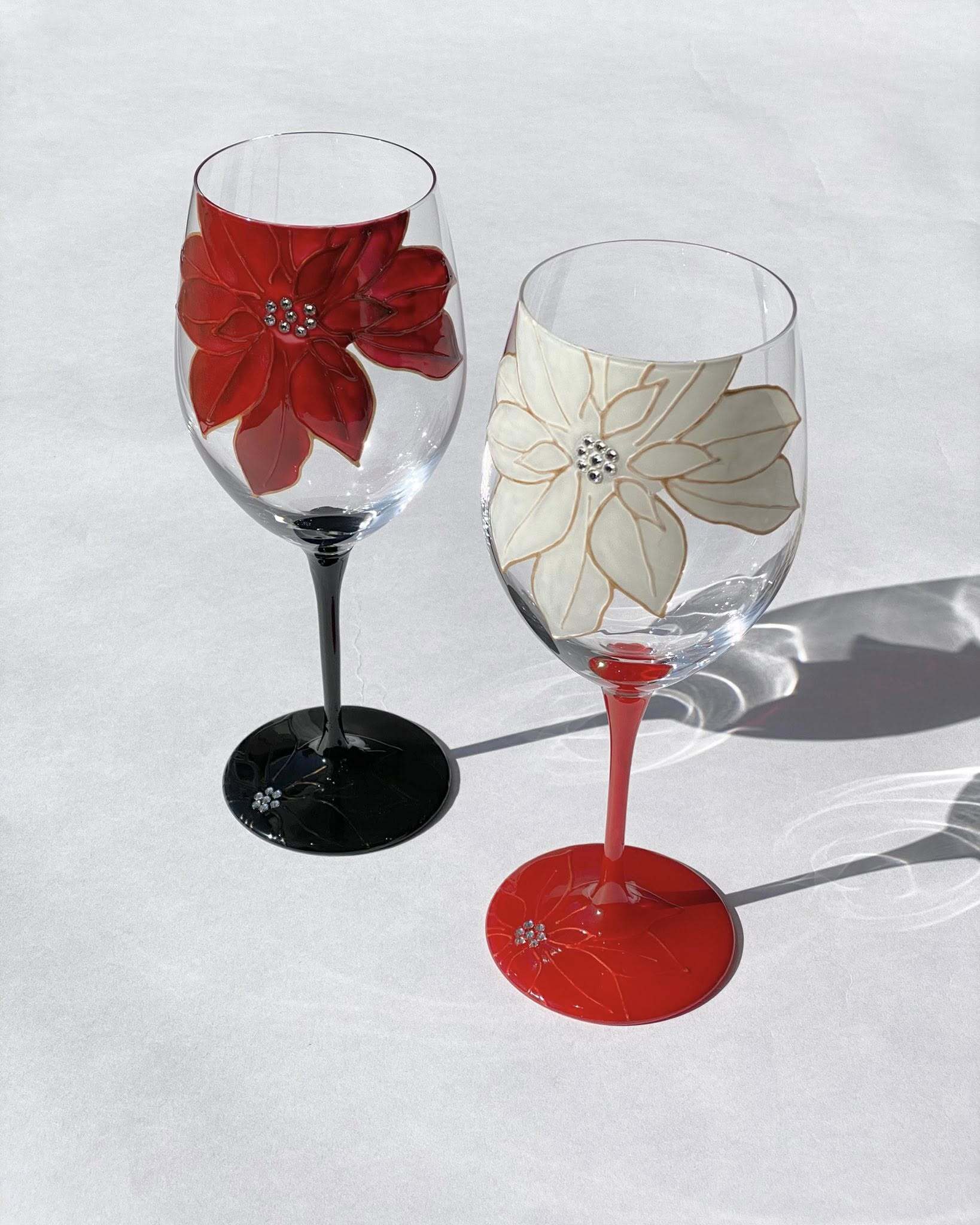 【還暦祝い】人気の赤ポインセチア ワイングラス1個