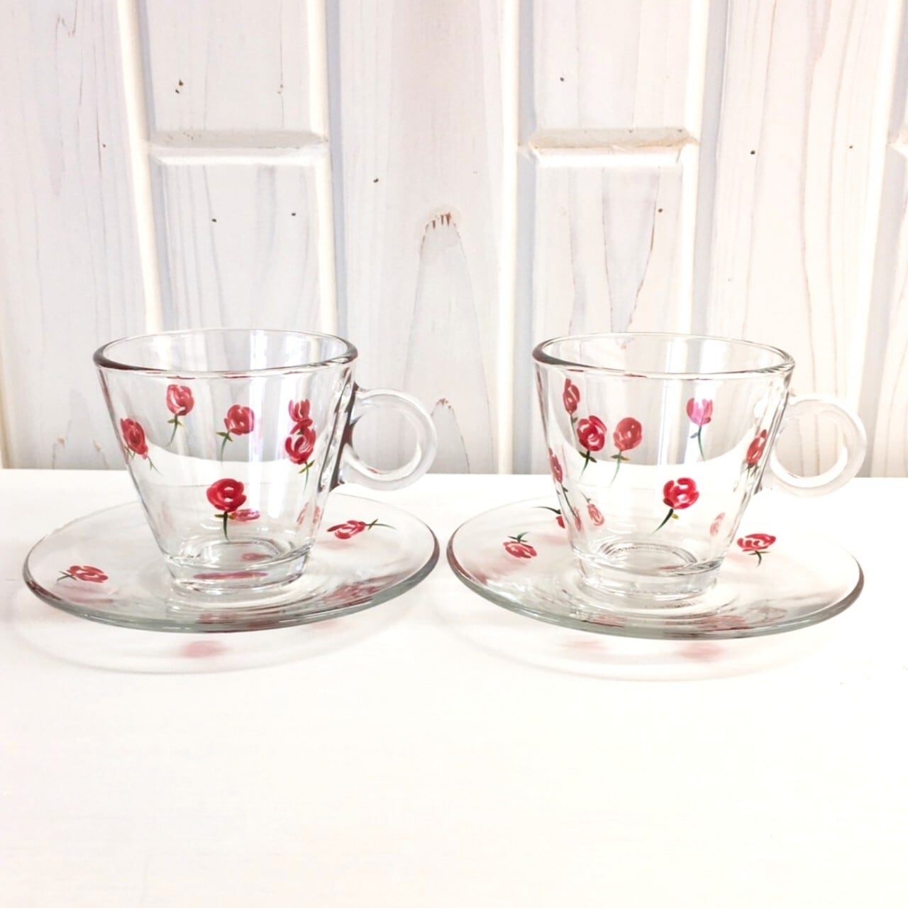 《母の日ギフト母娘ギフト》【プチローズ赤赤】バラ名入れティーカップコーヒーカップ2個|還暦祝い・古希祝い誕生日プレゼント・母の日ギフト・結婚祝い・還暦祝い・退職祝い・新居祝い