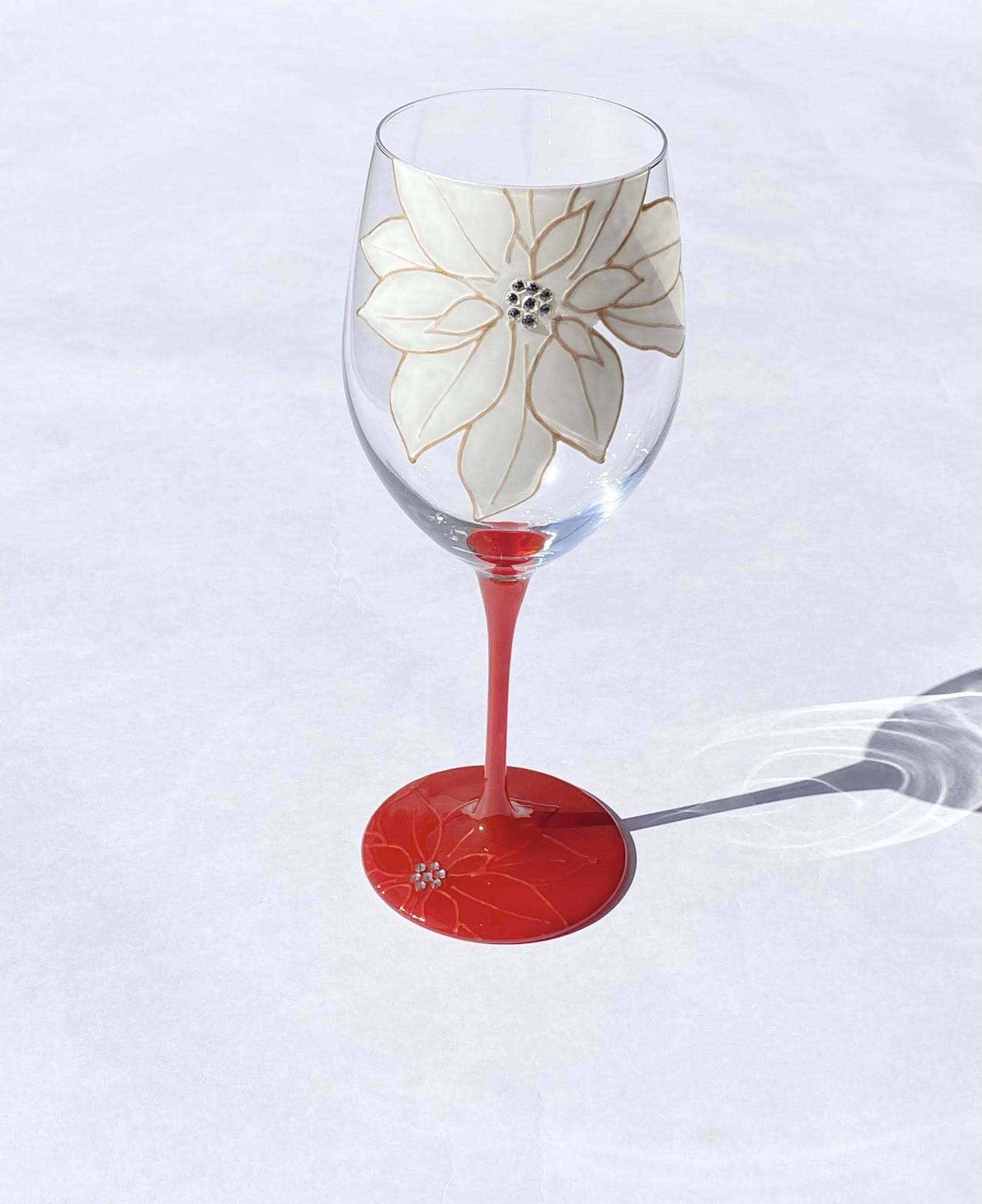 【クリスマスギフト】白ポインセチア 大人の楽しむXmasポインセチア ワイングラス1つ(手描きガラス絵付け)