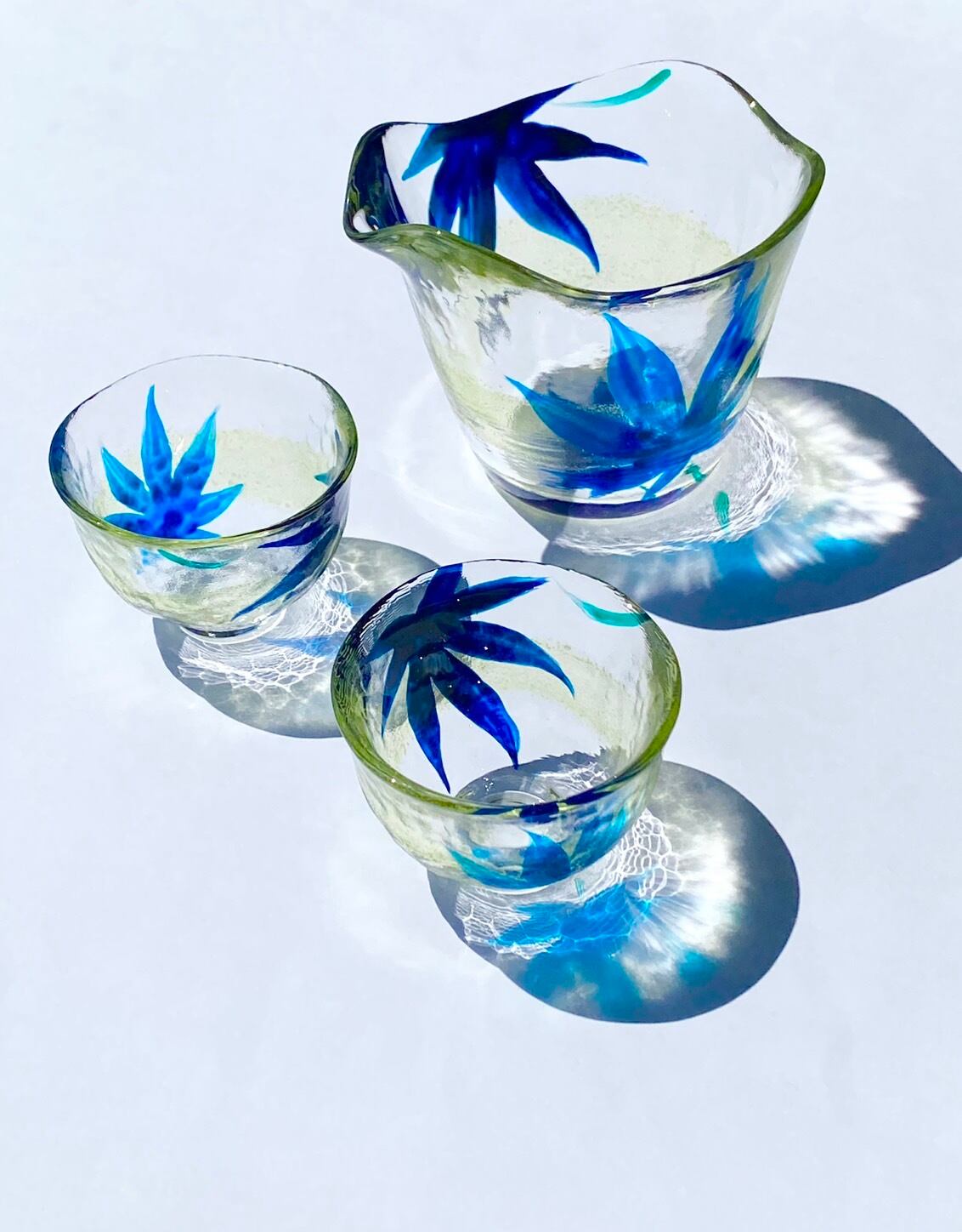 【夏】青紅葉耐熱ガラスの日本酒 徳利&ペアお猪口セット|お誕生日プレゼント・退職祝いプレゼント・結婚祝いギフト・両親へのプレゼント